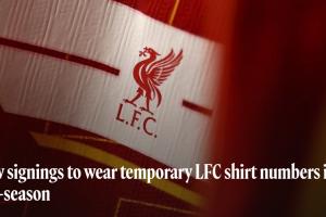 体育资讯07月13日讯 利物浦官方发布消息,今夏的新援们将身披临时号码出战。