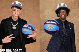 体育资讯6月24日讯 雷霆总比分4-3击败步行者夺冠,切特-霍姆格伦和杰伦-威廉姆斯也成为NBA历史上第三对作为同届乐透秀并肩拿下总冠军的组合,切特是2022年的榜眼、杰伦-威廉姆斯则是同年的第12顺位。